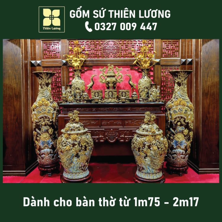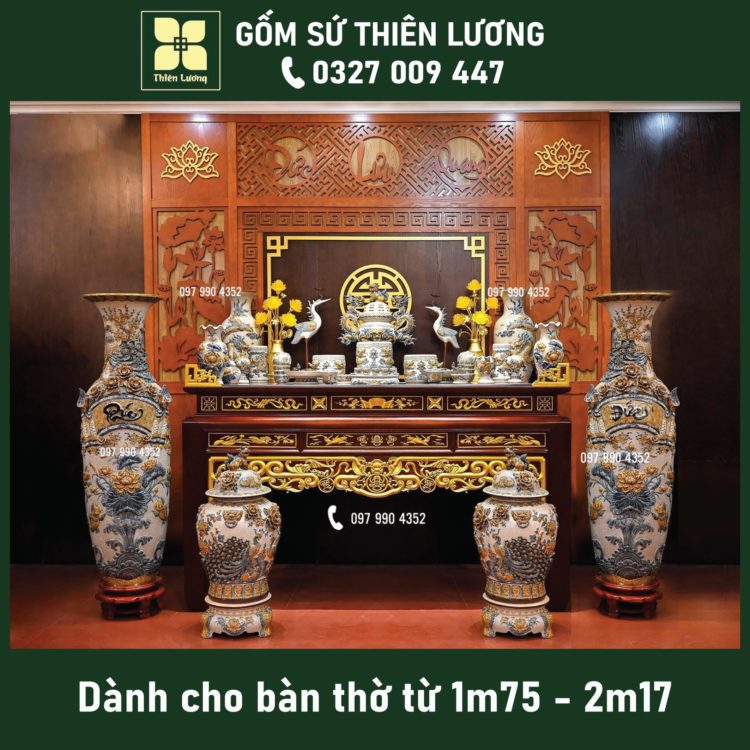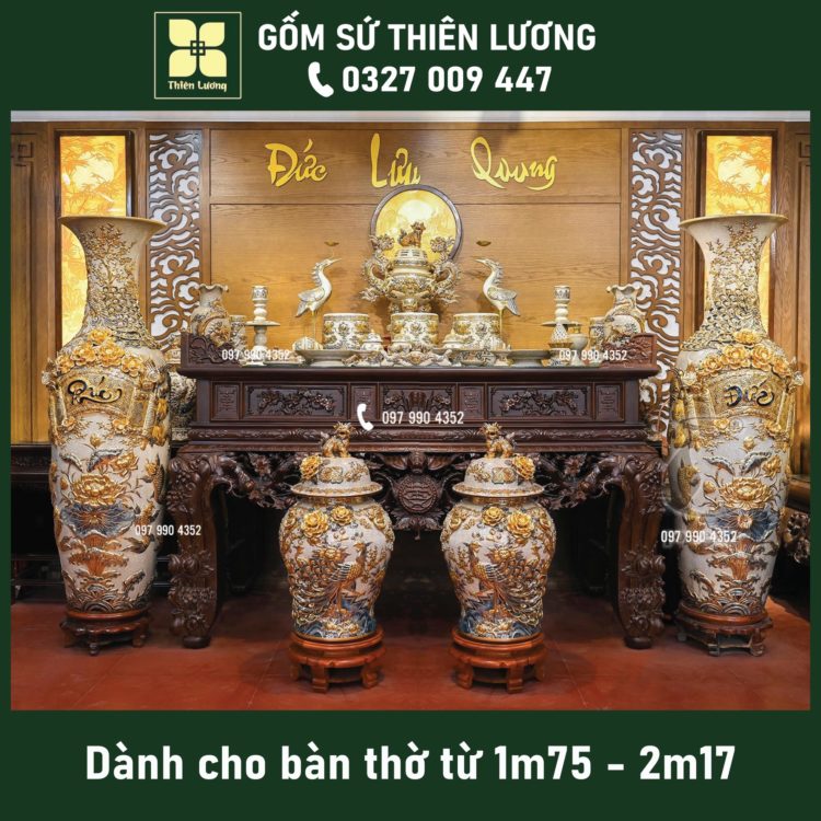 Bộ đồ thờ men hoàng tộc đắp nổi cho bàn thờ 1m97-2m17 – TLBT0097