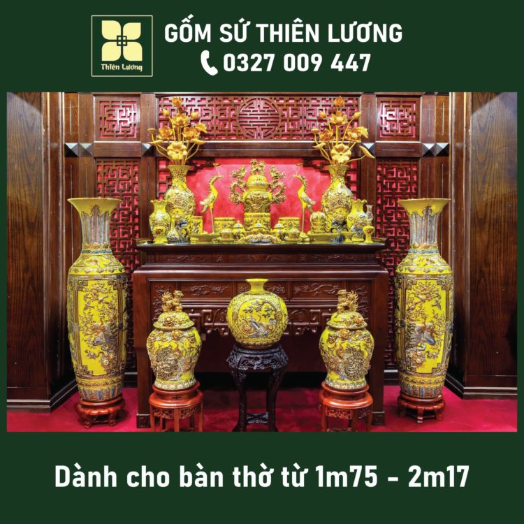 Bộ đồ thờ men hoàng thổ đắp nổi cao cấp cho ban thờ 1m07-1m55 – TLBT0085