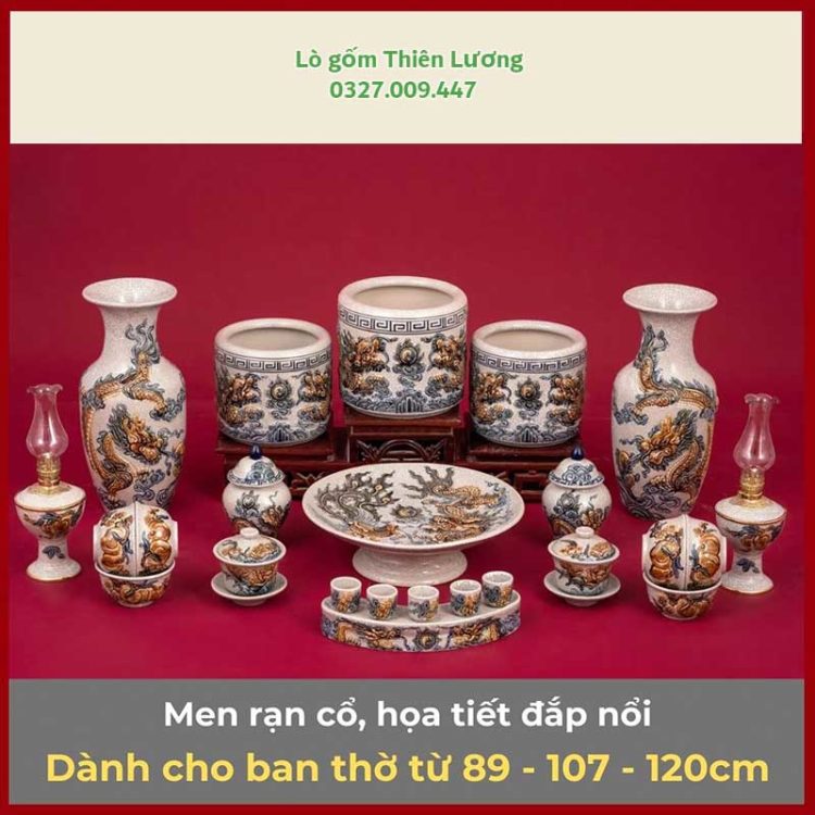 Bộ đồ thờ men rạn đắp nổi Rồng cho ban thờ 89-107-120cm – TLBT0064