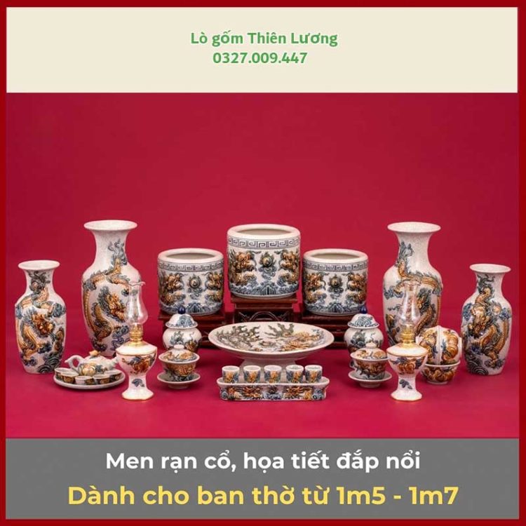 Bộ đồ thờ men rạn đắp nổi Rồng cho ban thờ 1m75-2m17 – TLBT0069