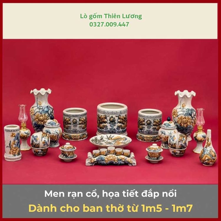 Bộ đồ thờ men rạn đắp nổi 23 chi tiết cho ban thờ 1m5-1m7 – TLBT0077