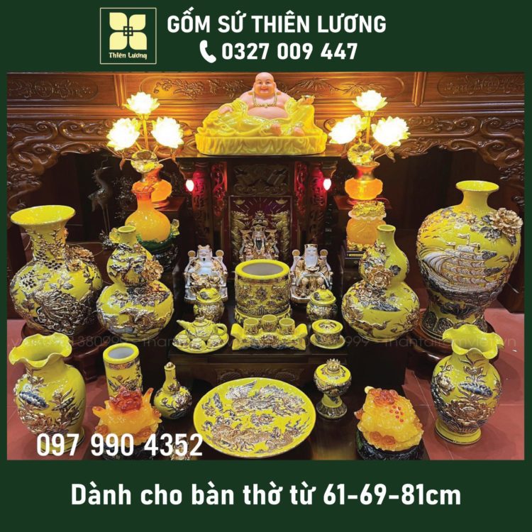 Bộ đồ thờ ban thần tài men màu vàng vẽ tay với vàng 24k Bát Tràng cao cấp bảo hành trọn đời 13.200.000đ10.200.000đ Mua hàng