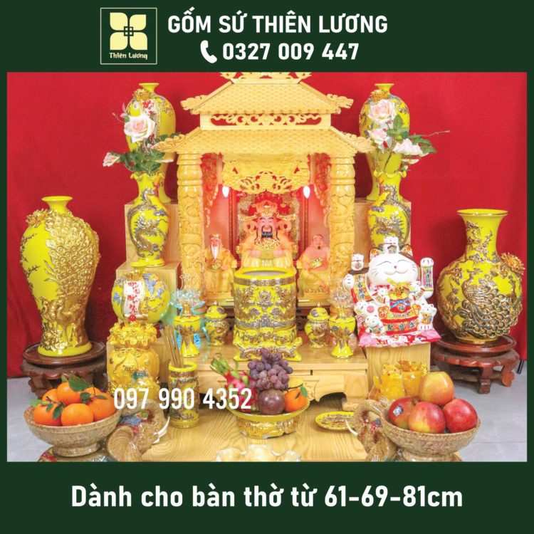 Bộ bát hương thờ ban thần tài men màu vàng vẽ tay vàng 24k Bát Tràng cao cấp bảo hành trọn đời 12.200.000đ9.200.000đ Mua hàng