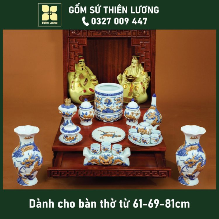 Trọn bộ bát hương thờ gia tiên men lam vẽ tay vàng 24k Bát Tràng loại 1 cao cấp giá tốt nhất