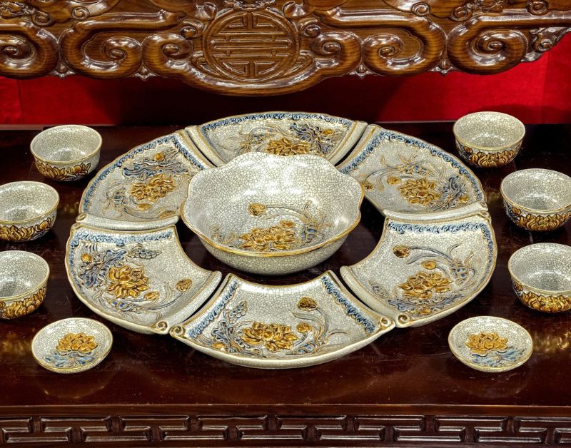 Nếu bạn muốn bộ đồ ăn cúng gia tiên có màu sắc đặc biệt, hãy chọn những bộ gốm với lớp men trơn, men rạn hoặc men màu tự nhiên. Những bộ gốm này sẽ tạo nên một vẻ đẹp cổ điển, mang đậm nét văn hóa truyền thống.