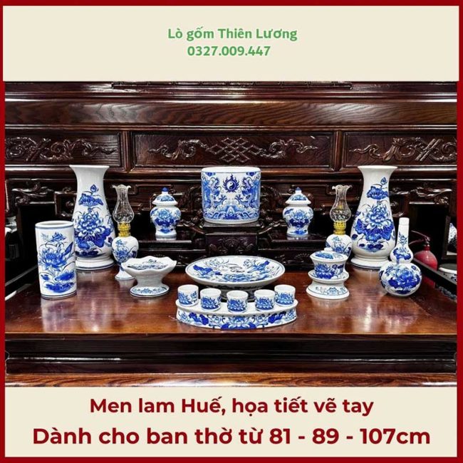 Trong không gian thờ cúng của người Việt, sự trang nghiêm và tinh tế luôn được đặt lên hàng đầu. Bộ đồ thờ men lam Huế họa tiết sen rồng vẽ tay 13 chi tiết cao cấp đến từ làng gốm Bát Tràng chính là lựa chọn lý tưởng để tôn nghiêm bàn thờ gia tiên, thể hiện trọn vẹn đạo hiếu và lòng thành kính.