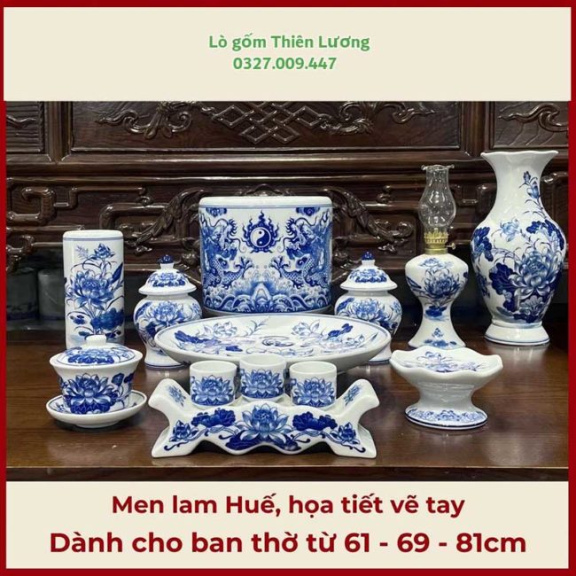 1. Thông tin sản phẩm Bộ đồ thờ men lam Huế họa tiết vẽ tay Sen Rồng cao cấp 10 chi tiết – TLBT0032